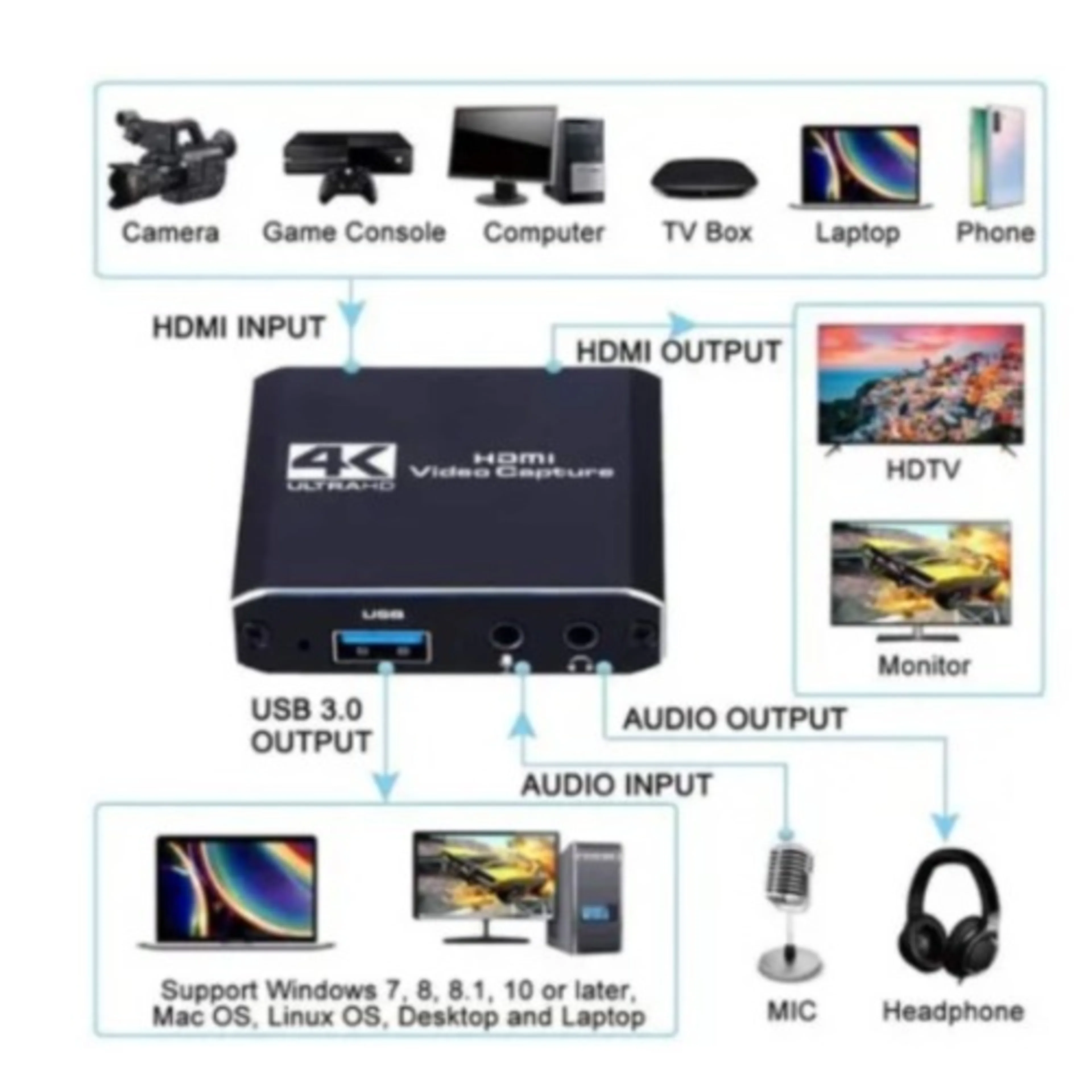 4k 1080p Hdmi To Usb 3.0 Video Capture Card Streamin...