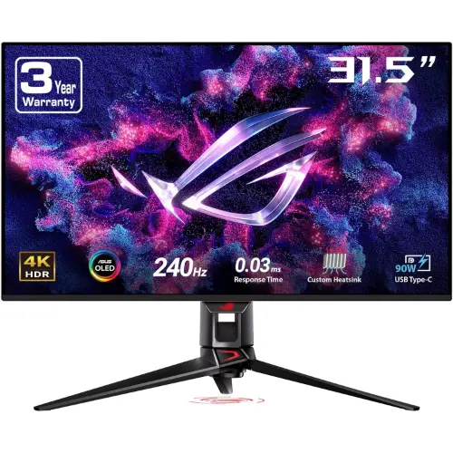 ASUS ROG 32″ 4K OLED Gaming Monitor – UHD 3840 x 2160, QD-OLED, 240Hz, 0.03ms, G-SYNC Compatible, Custom Heatsink, Graphene Film, 99% DCI-P3, True 10-bit, 90W USB-C