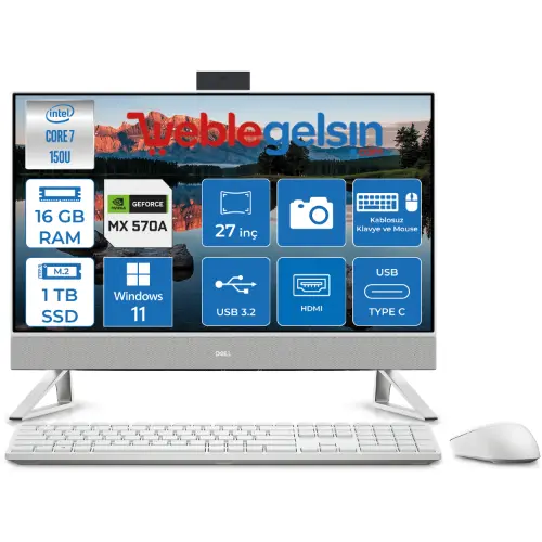 Dell Inspiron 7730 All-in-One i7 27-inch desktop PC 16GB DDR4, 1TB SSD, FHD Touch Display, NVIDIA GeForce MX570 2GB, IR Camera, Wireless Keyboard & Mouse, Windows 11 Pro, White