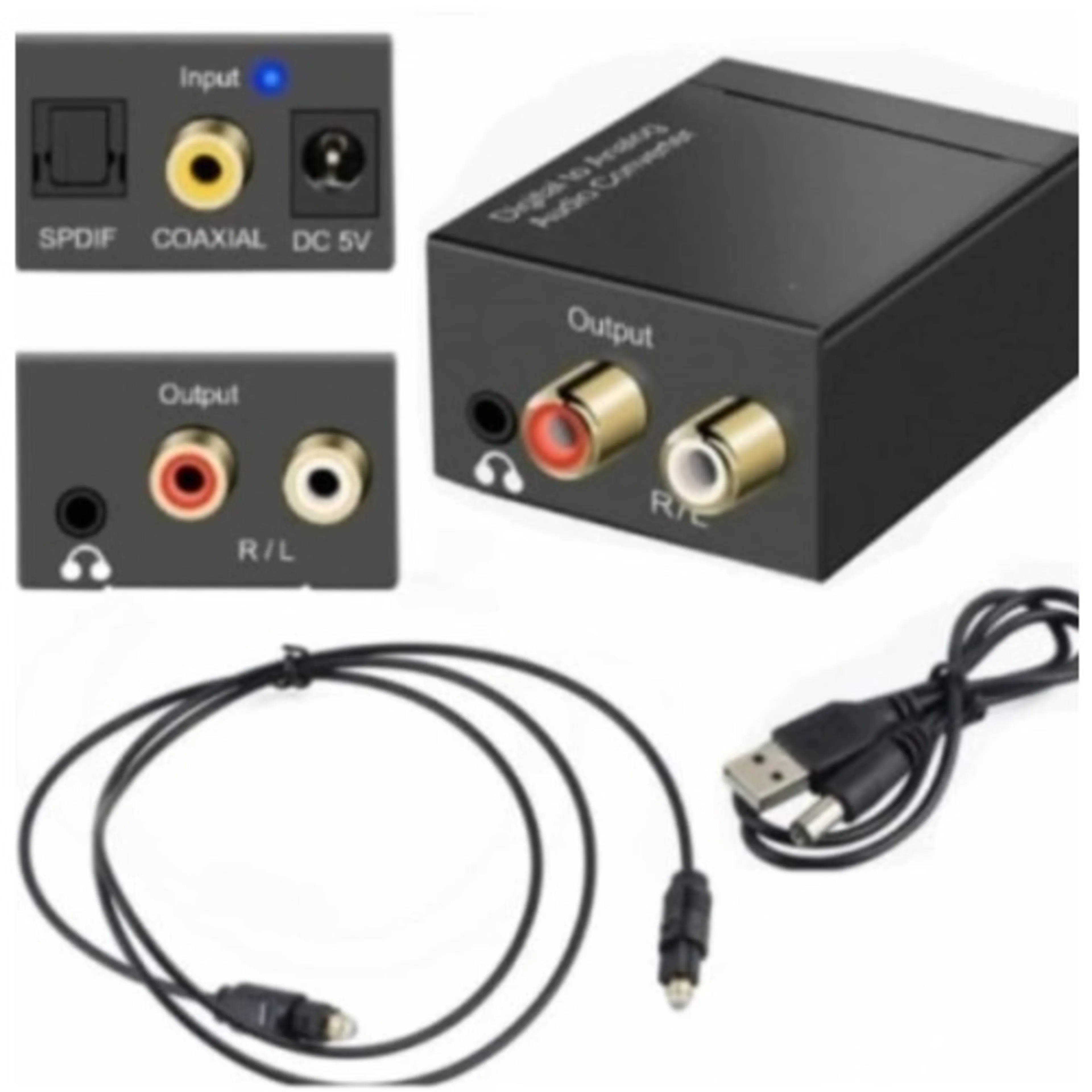 Digital To Analog Audio Rca L/r Converter Adapter Wi...