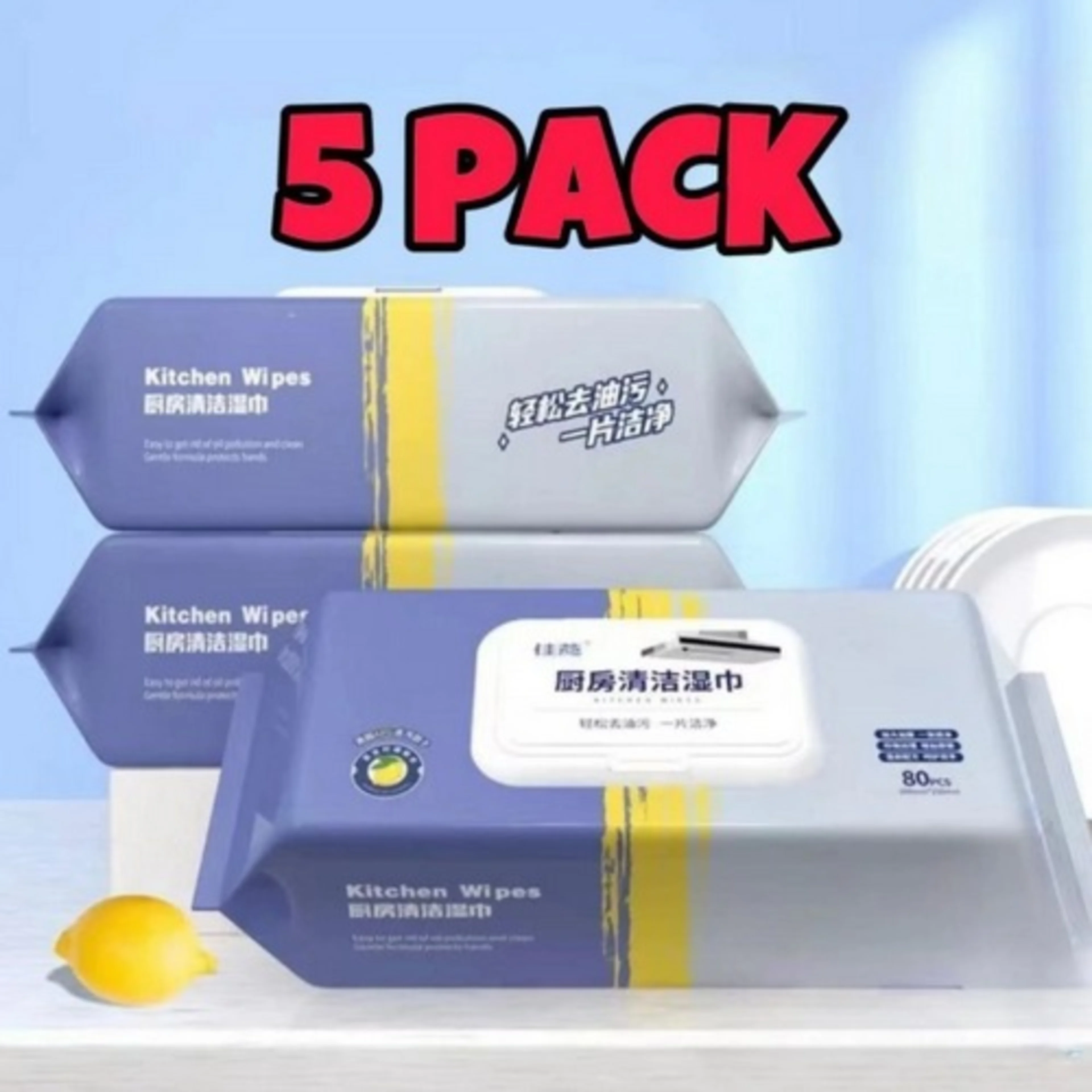 Disposable Wet Kitchen Wipes-5Pack Of 80pcs