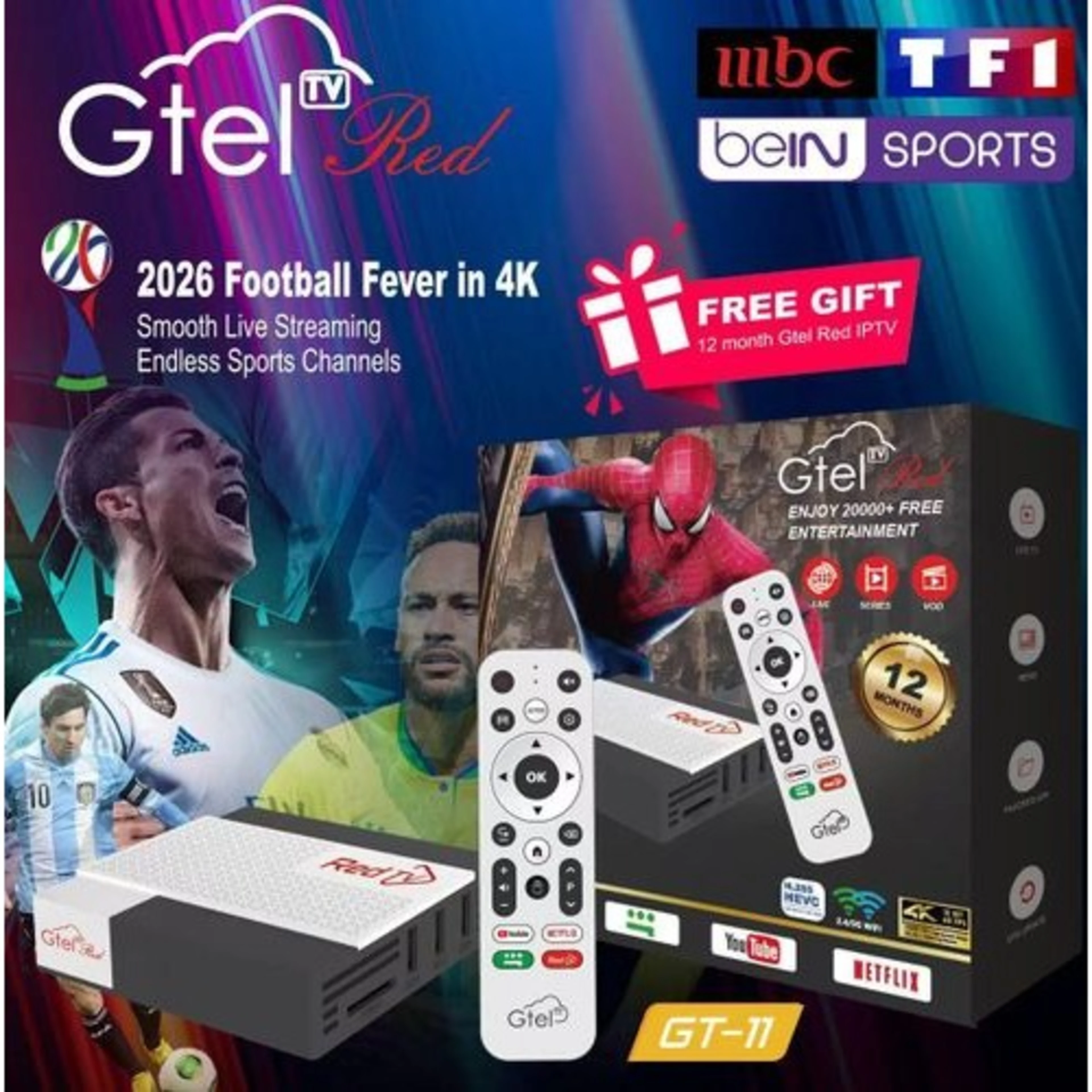 Gtel Red Gt11 Android Tv Box With 20000+ Free Tv Cha...