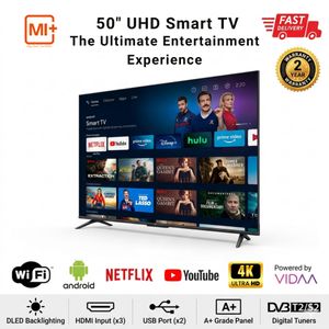 Mi+ 50 Inch 4K UHD Frameless Smart TV – VIDAA OS, Netflix, YouTube, HDMI, 2 Years Warranty