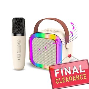 Mini Karaoke Bluetooth Speaker with 1 pcs Wireless Mic, Colorful RGB Party Lights, 5 Voice Effects, Bluetooth 5.3, Perfect for Kids & Adults, Portable Speaker for Family Parties & Birthdays(Off-White -1Mic)