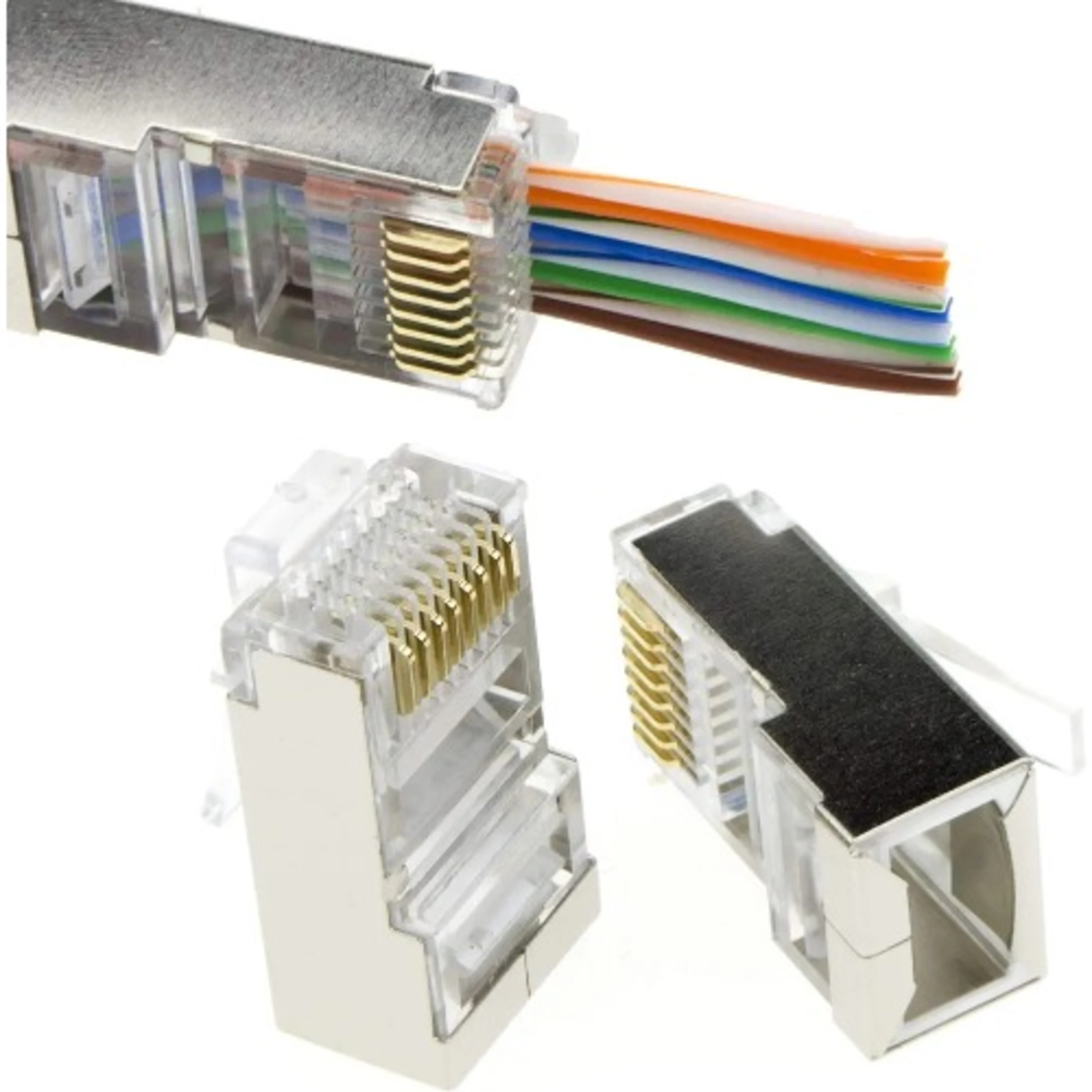 Pack Of Rj45 Cat 6 Shielded Pass Through/ Through Ho...
