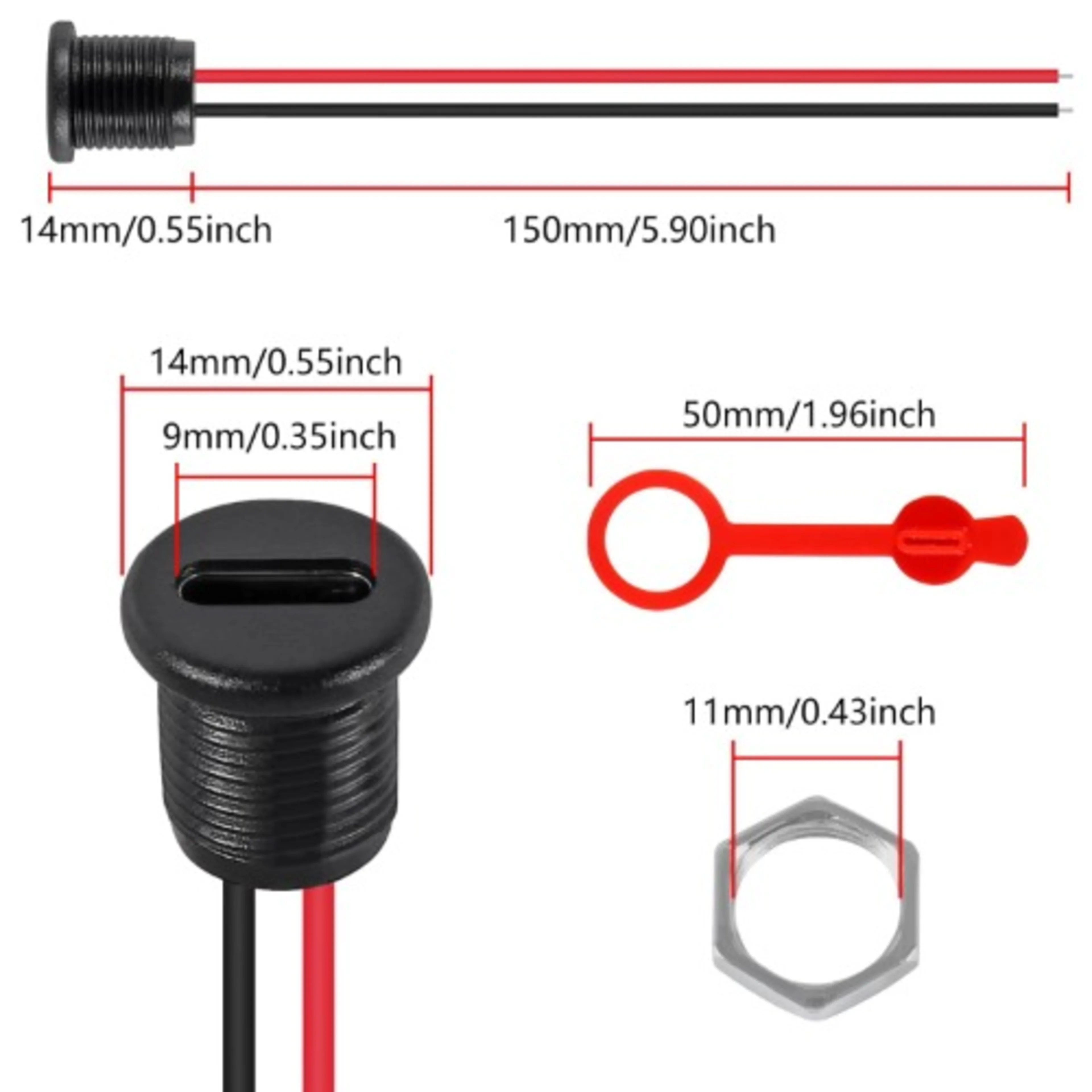Panel Mount USB Type C Female Connector with Screw &...