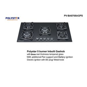 Polystar 5 Burners Tempered Glass In-Built Gas Hob