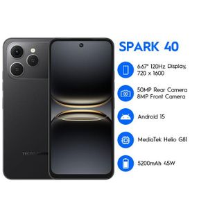 Tecno Spark 40 6.67" 4GB RAM/128GB ROM Android 15 - Black